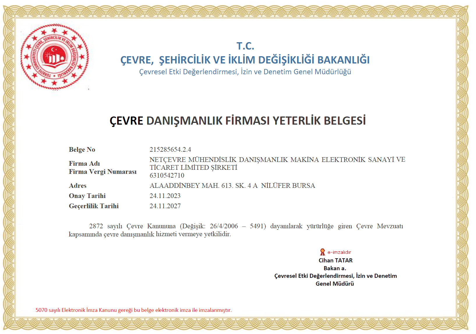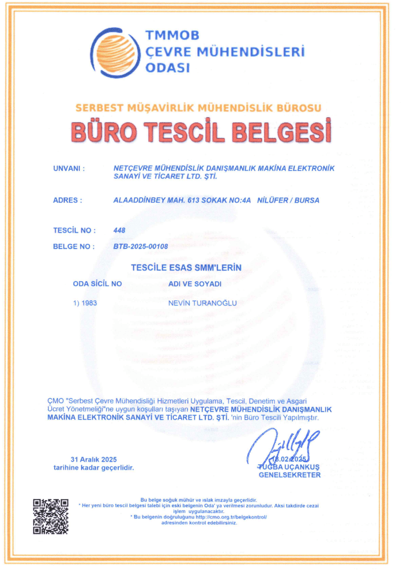 ÇEVRE DANIŞMANLIK FİRMASI YETERLİK BELGESİ